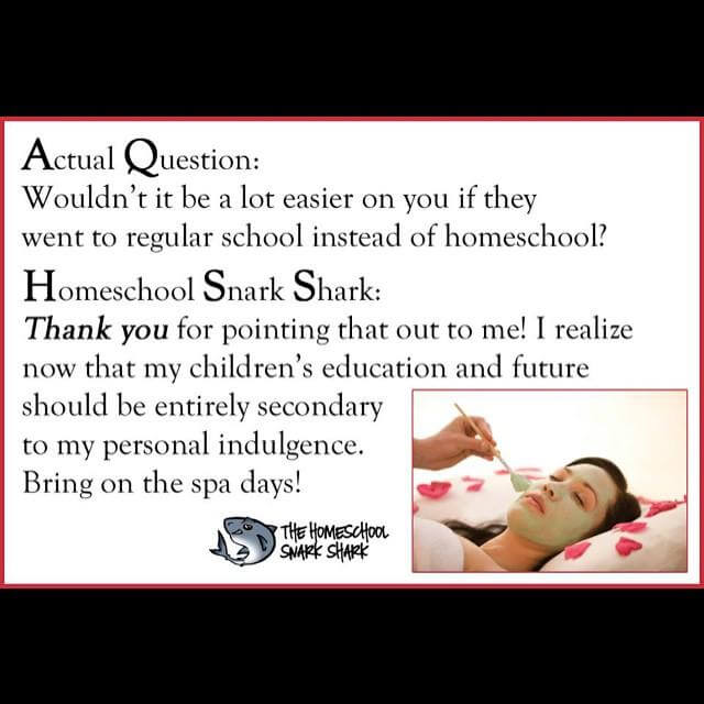 For those who haven’t come across the Homeschool Snark Shark, you don’t know what you’re missing. Here’s their Instagram account for you to follow or if you prefer, their Facebook page.